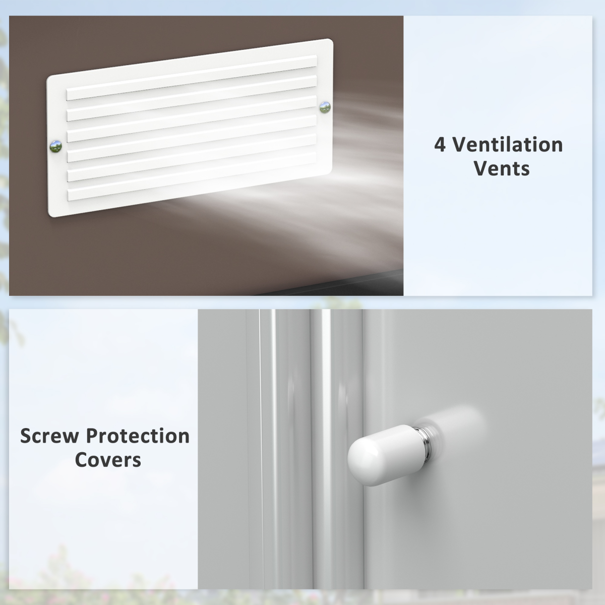 Large, open inner storage : A spacious garden tool shed, the design offers plenty of storage room for your equipment, tools and other outdoor accessories. Floor foundation IS included.Steel structure: A strong, sturdy metal shed, protecting your equipment inside. Paint coating provides mild weather protection. Ventilation slots to keep inside fresh.Sloped roof: Rainwater will not build up and stagnate on the top of this large shed. helps prevent leaking inside and rusting.Double door shed: Easy to enter and leave this tool shed.Dimensions: 192H x 277L x 191Wcm. Door: 96L x 152Hcm. Gloves must be worn when assembling, to avoid any potential injuries.