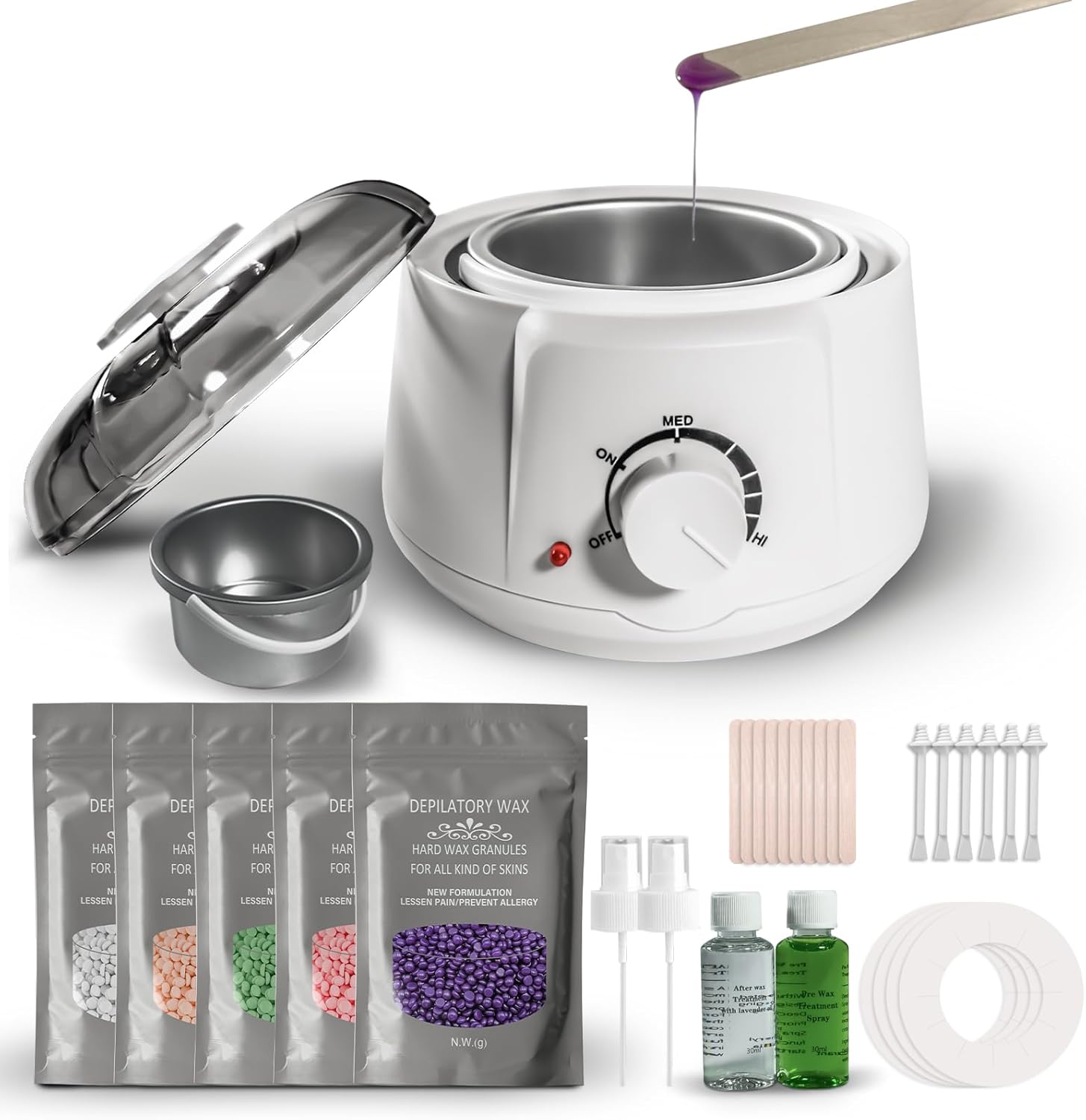 - COMPLETE WAXING KIT: Our professional waxing kit includes a wax pot, 5 packs of wax beads, and 20 applicator sticks. Everything you need for a hassle-free hair removal experience.