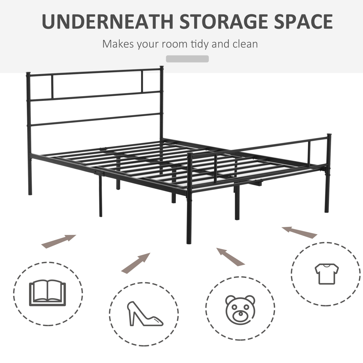 Double Metal Bed Frame w/ Headboard & Footboard, Underbed Storage Space